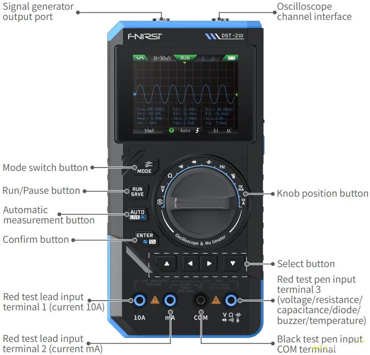 Три в одном - осциллограф, мультиметр, генератор сигналов FNIRSI DST-210