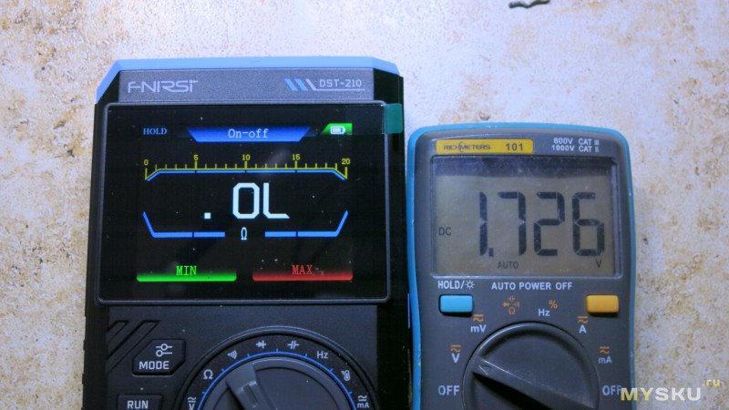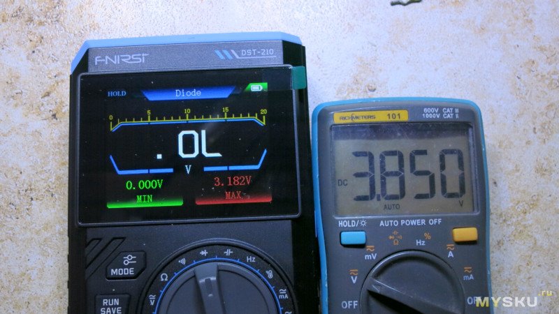 Первый режим это автомат. Работает, прозвонка сильно запаздывает. Под основным значением есть минимальное и максимальное значения.