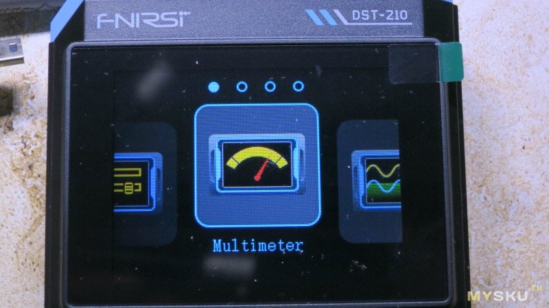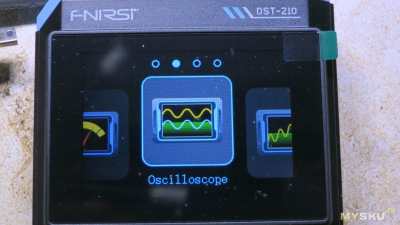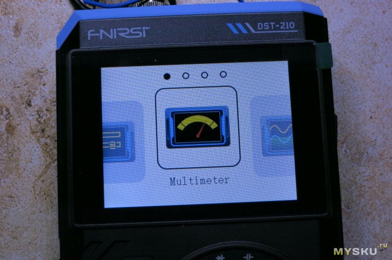Далее появляется карусель выбора режима, это мультиметр, осциллограф, генератор и настройки.