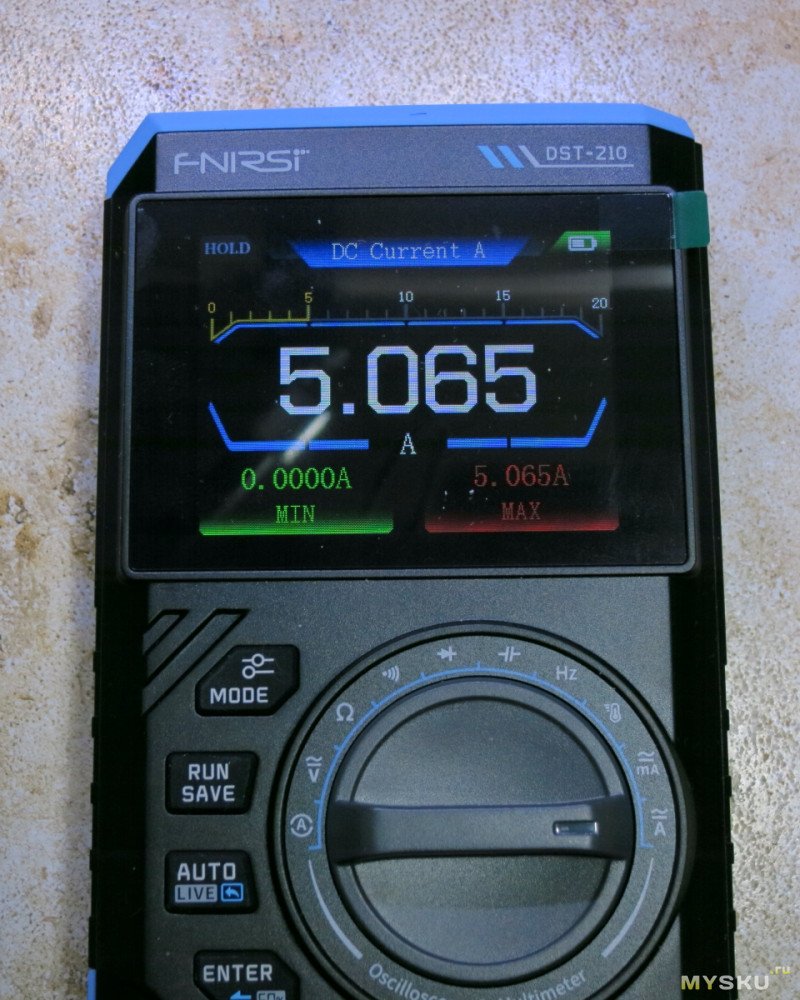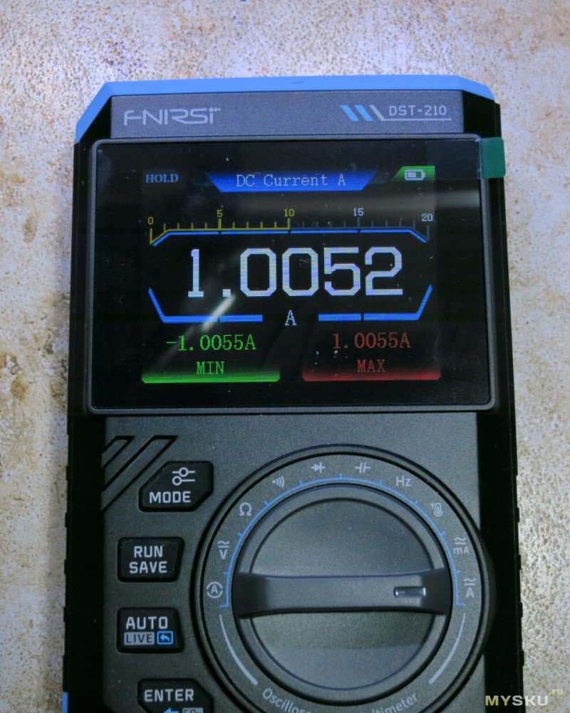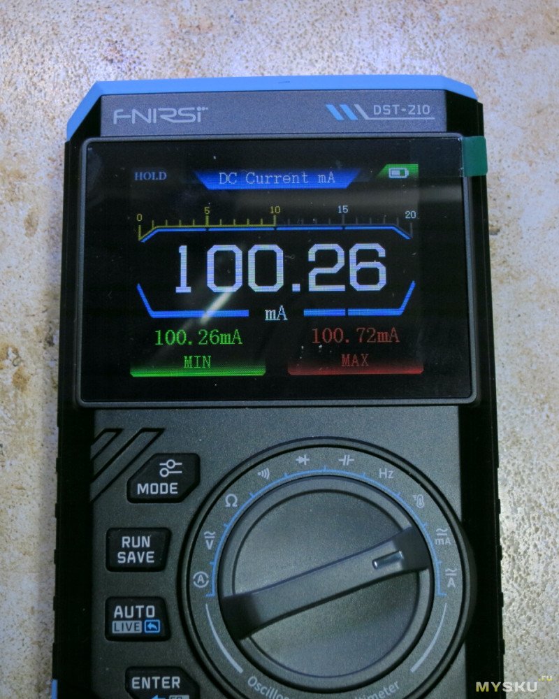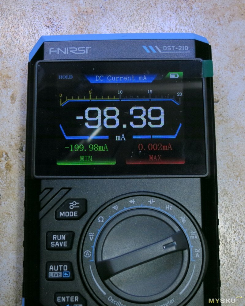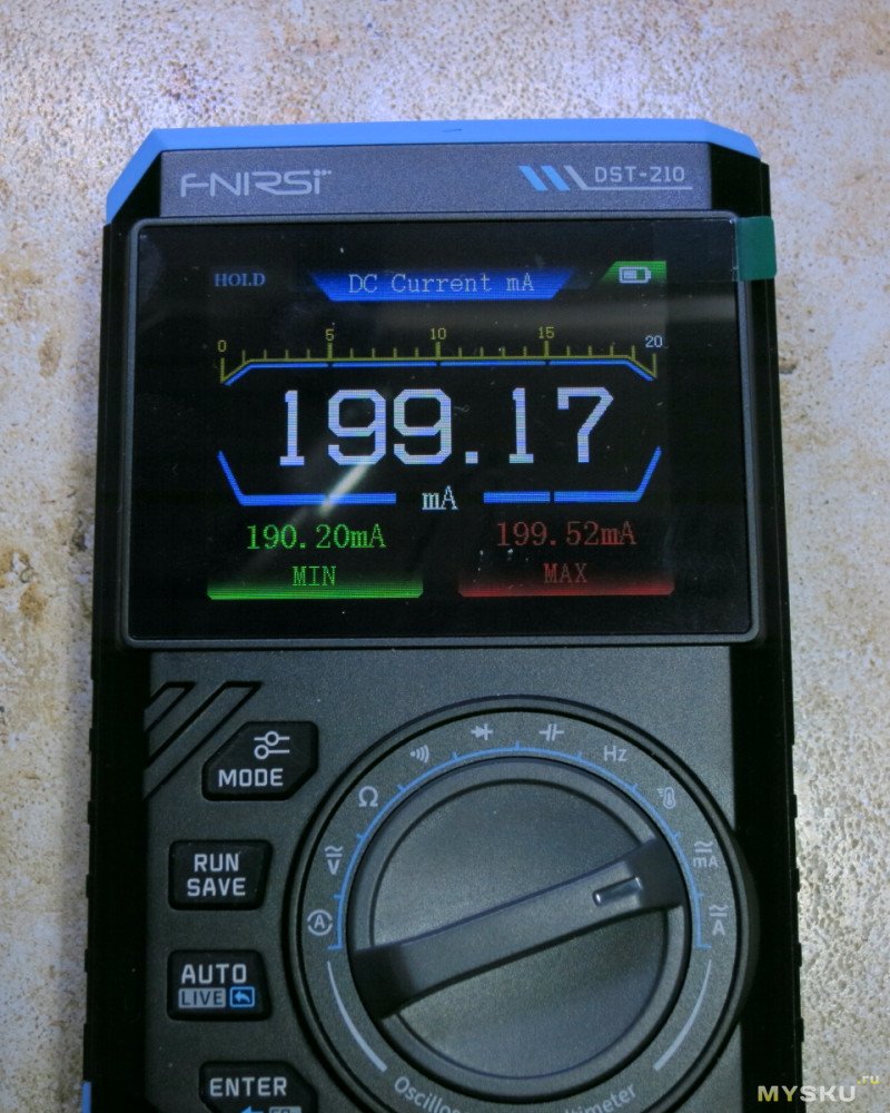 Максимальный ток показывает 199ма, при большем токе показывает OL