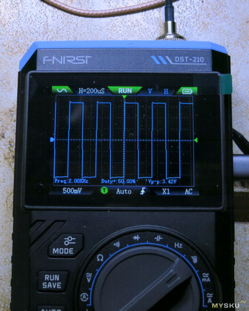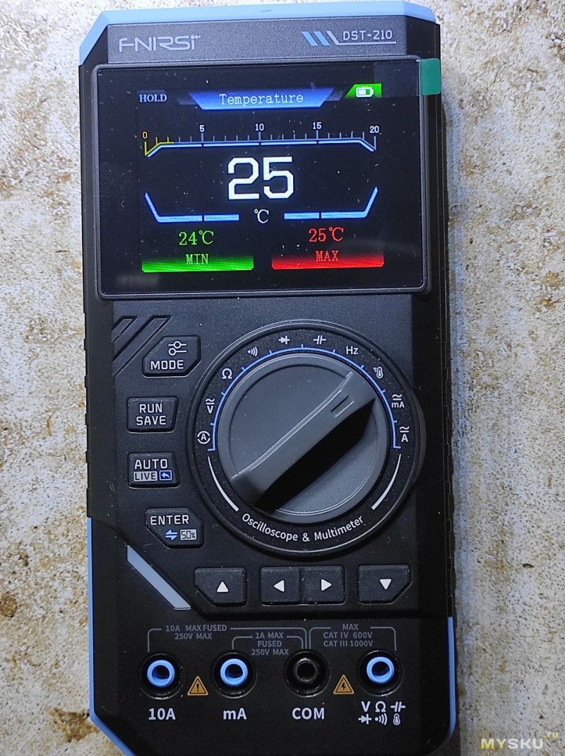 У фнирси получился неплохой прибор для начинающего радиолюбителя. Хорошая точность мультиметра, большую часть сигналов можно посмотреть осциллографом. Даже можно дать сигнал с генератора, хотя он слабенький. Есть недочеты, есть надежда, что их исправят в следующих прошивках, но скорее всего нет.Продавец предоставил купон FNSCD237 до 7 декабря, с ним цена должна снизиться на 7$, но пока он не работает.