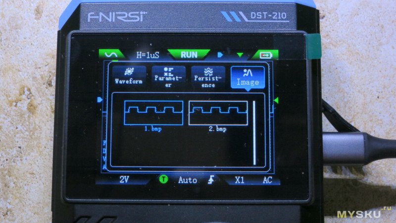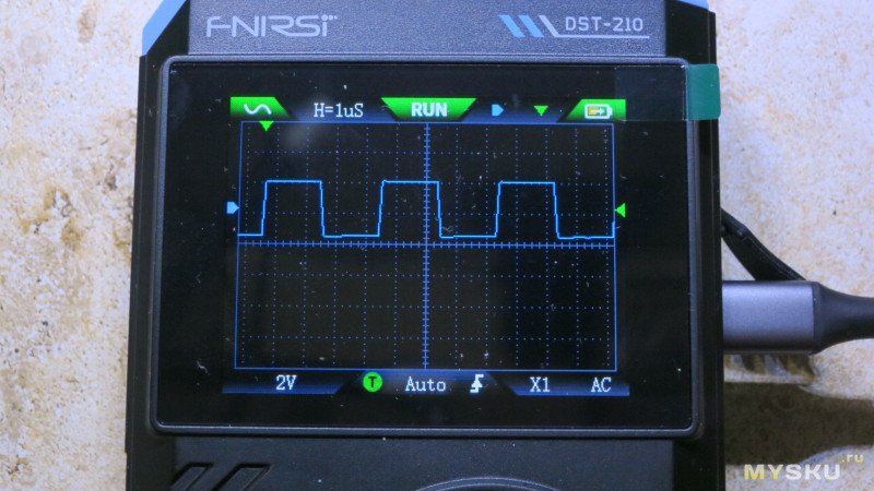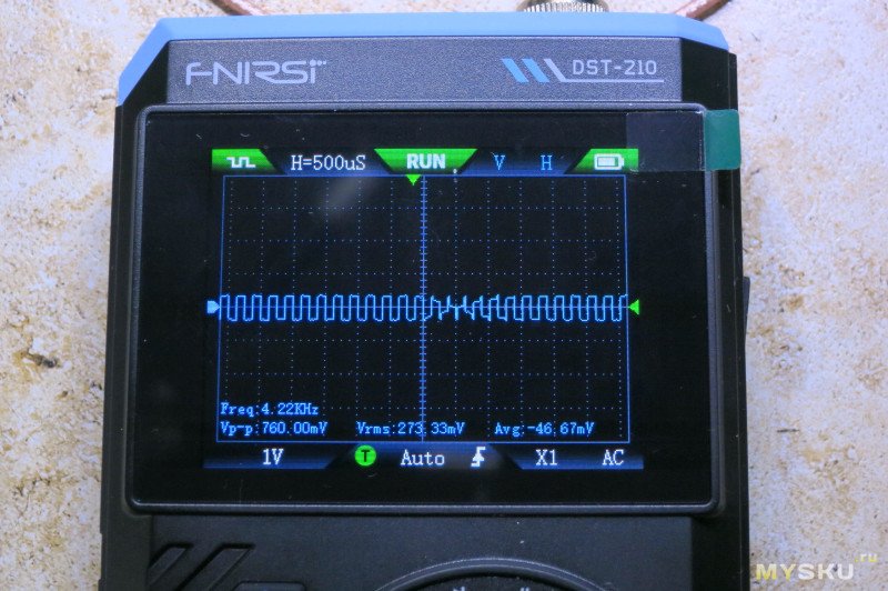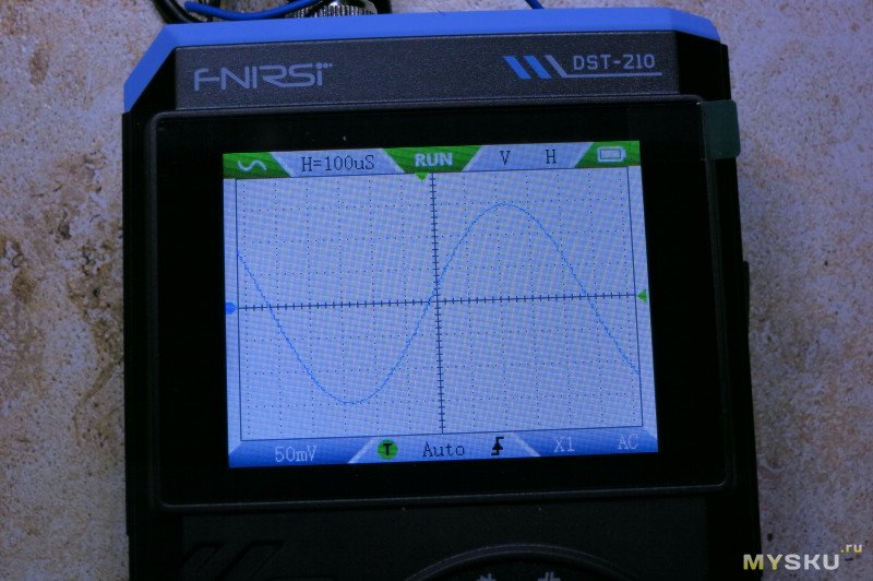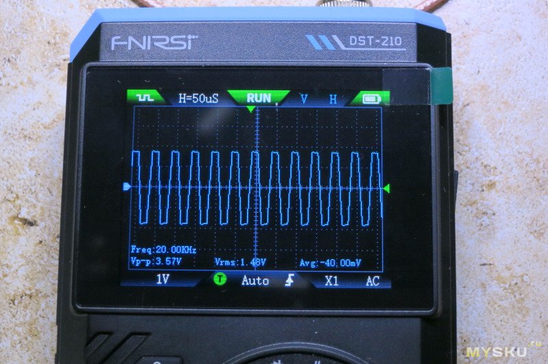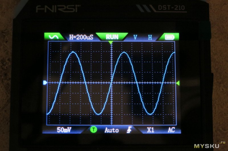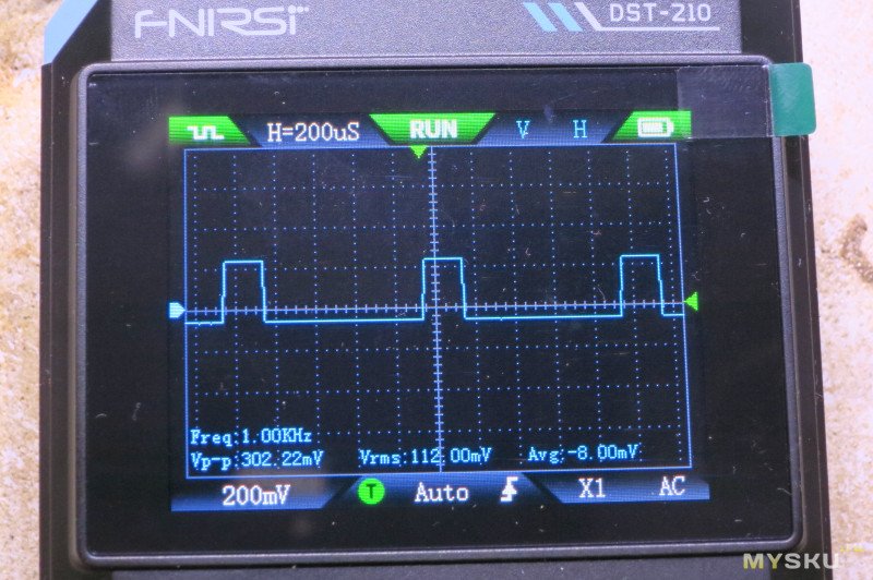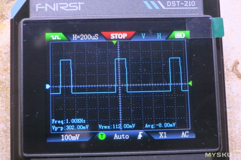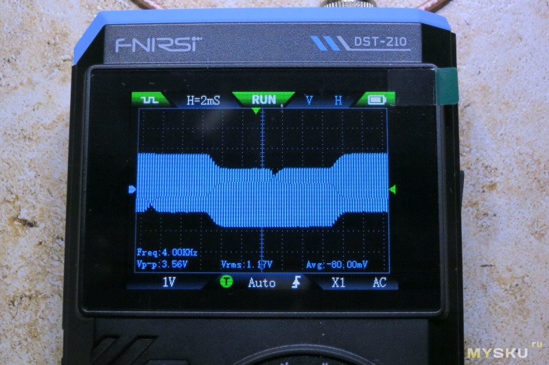 Дал сигнал 1кГц с встроенного генератора. Поставил на его на паузу кнопкой SAVE и масштабирую по напряжению.![]() | ![]() |
