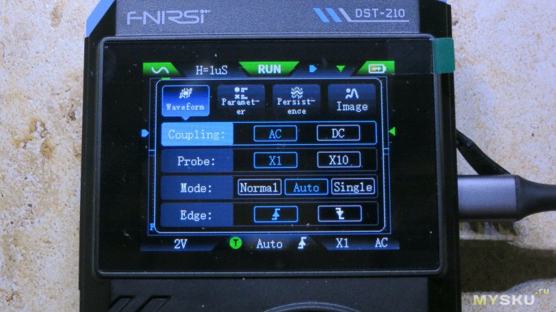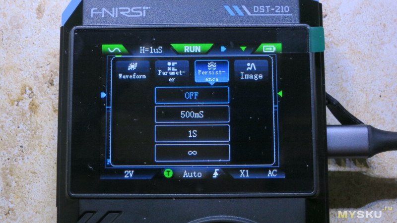 Если зажать кнопку MODE, то можно войти в меню осциллографа