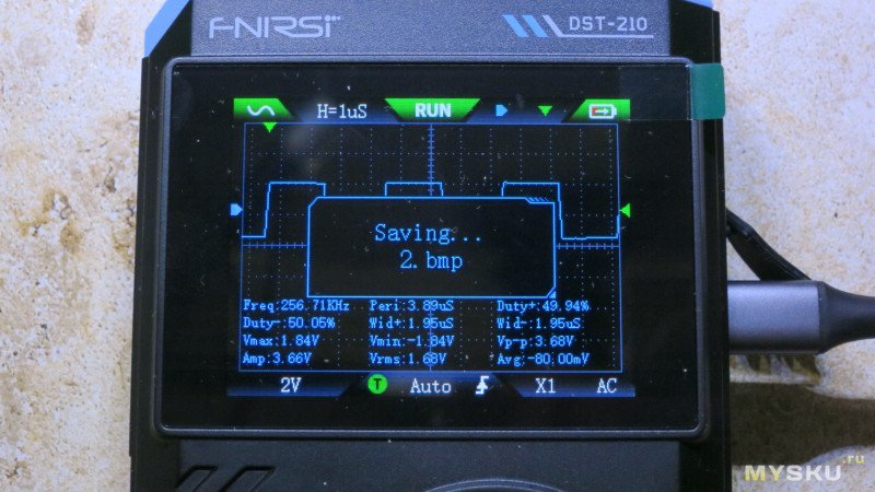 Для сохранения снимка экрана нужно нажать и удержать кнопку SAVE, экран сохранится вместе с измеренными параметрами.