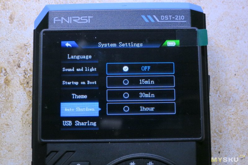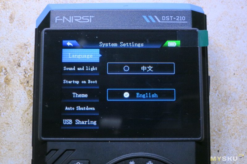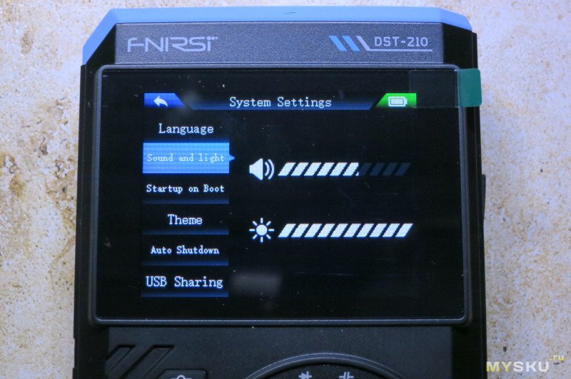 В этом меню выбор языка, регулировка громкости и подсветки, время автовыключения и прочее.