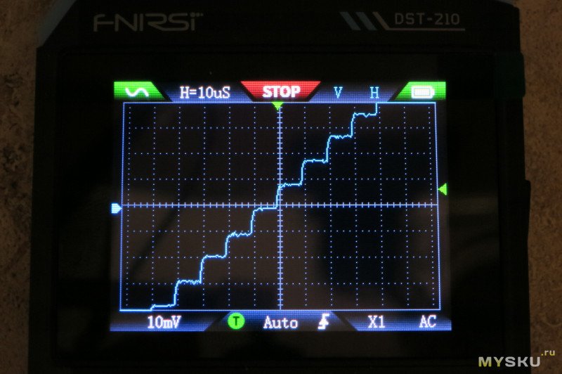 Но если увеличить, развернуть этот сигнал, то видно ступеньки. Это особенность или недостаток всех генераторов от фнирси- кривые создаются из цифрового отпечатка, а не по формуле.
