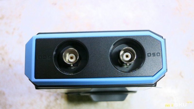 На верхней грани BNC разъемы осциллографа и генератора, на правой кнопка включения и гнездо зарядки.