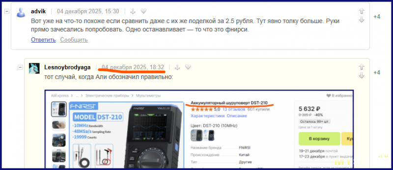 ZTOY-703S, 2 канала, 50 МГц полоса, 280 МГц выборка, TruRMS, 25000 counts. Летом брал за 4800, сейчас подорожал, но разница с сабжем не столь велика. Да и у самих Fnirsi есть такие же лучшие и не сильно дороже модели, видел, когда выбирал свой.