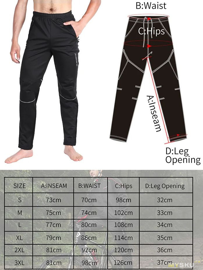 Тип устройства: Зимние велосипедные брюки для мужчин