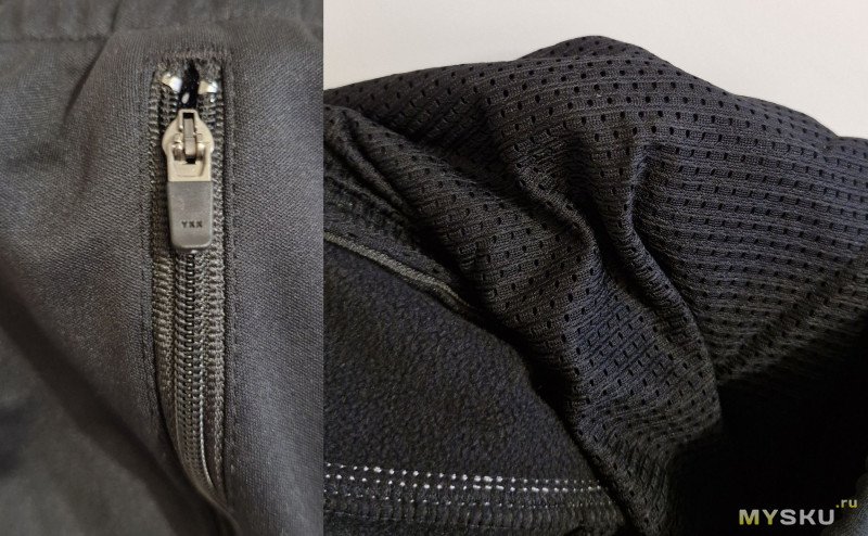 Карманов всего два, на молнии, а внутренняя часть перфорирована (сетка). Молния YKK (не продуваемая).
