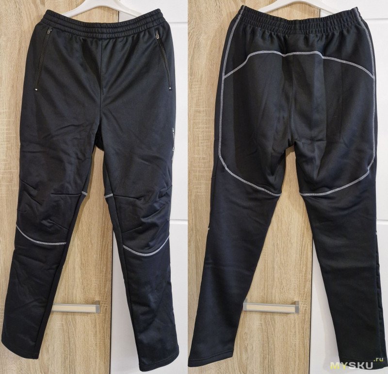 По итогу — за свои деньги спортивные штаны INBIKE IN071 вполне имеют право на покупку. Для «еврозимы» самый вариант. Непродуваемость обеспечивается (скорее всего) вшитой пленкой, а не резиновым напылением снаружи (которое не так долговечно). Задняя часть отводит избыток пота. Крой обычный, жаль пожалели утяжку молнией на голени. Размерная сетка близка к правде, но лучше почитать отзывы (почти две сотни) там пользователи пишут свои параметры.