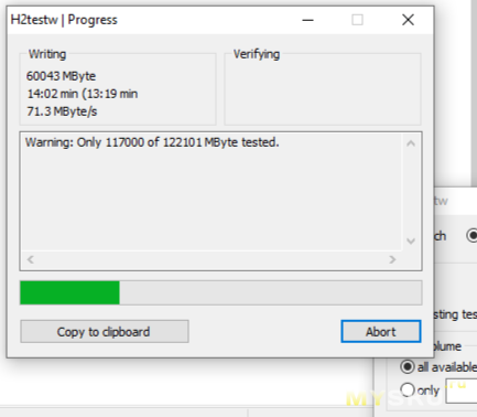 Программа задумалась, прошуршала тестами и выдала красноречивую ошибку: «Set Disk Capacity fail (42)».