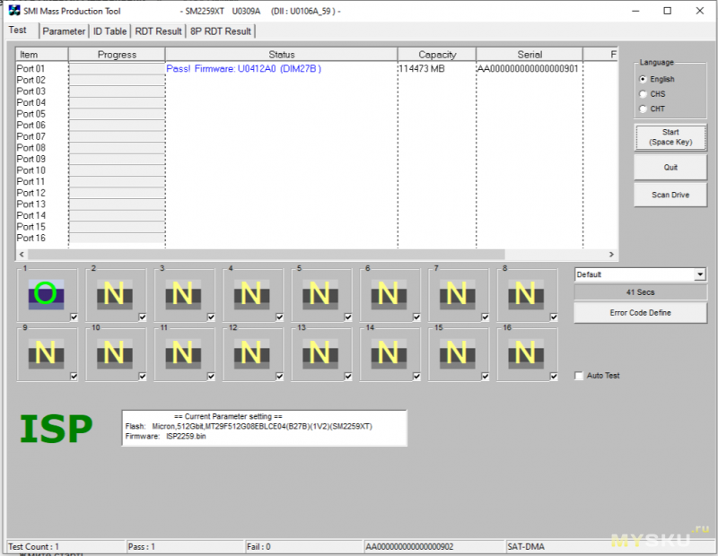 Полоска прогресса ползла мучительно долго. Контроллер честно проверял каждый блок на всех трех чипах.И вот, долгожданный зеленый круг PASS!