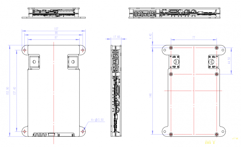 На чертеже — точные замеры. Вес — 260 грамм.