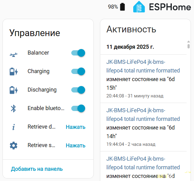 Реализуется на проекте: https://github.com/syssi/esphome-jk-bms