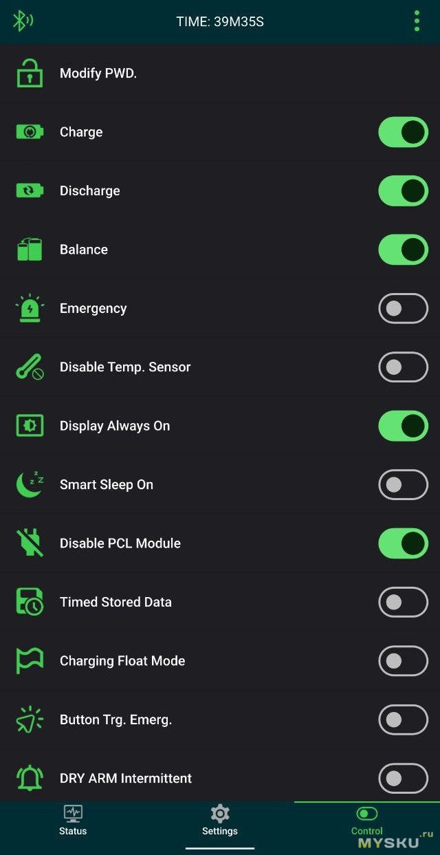 Так же можно включать и отключать зарядку, разрядку, балансировку.