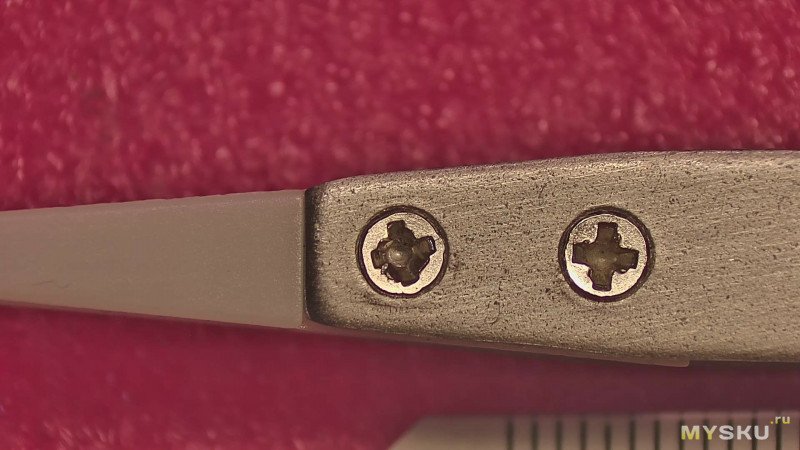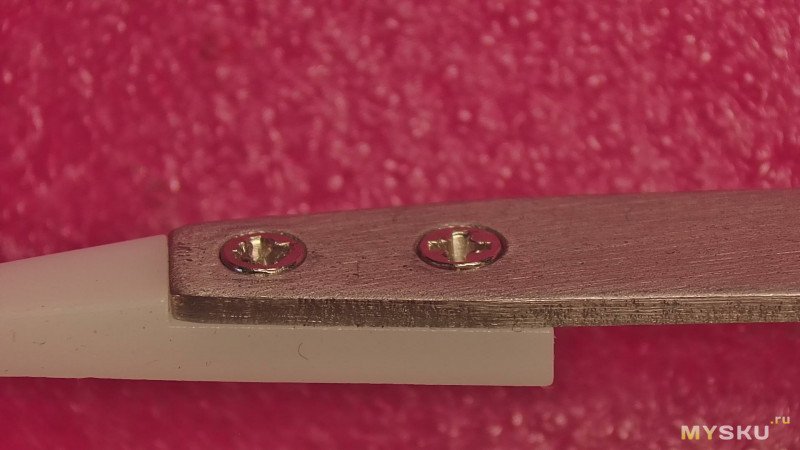 И тут сразу небольшой минус. Потайные винты чуть торчат на поверхности. И на них винтиках присутствуют заусенцы. Заусенцы я отшлифовал, а вот сами винтики еще нет.Так что пинцет требует доработки напильником.