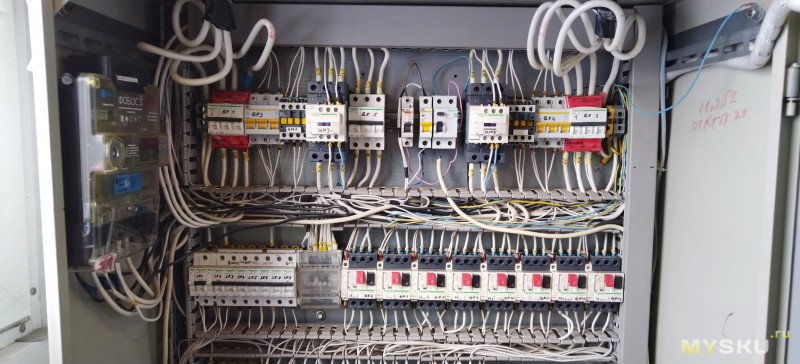 В шкафу на фото ПЛК Овен и три модуля расширения, остальное реле и контакторы. Таких шкафов у нас навалом. Даже не знаю, какие токи тут часто надо мерять… И зачем. Проверять, не отвалилась ли какая-то нагрузка? Это крайне редко, и обычно достаточно очевидно.