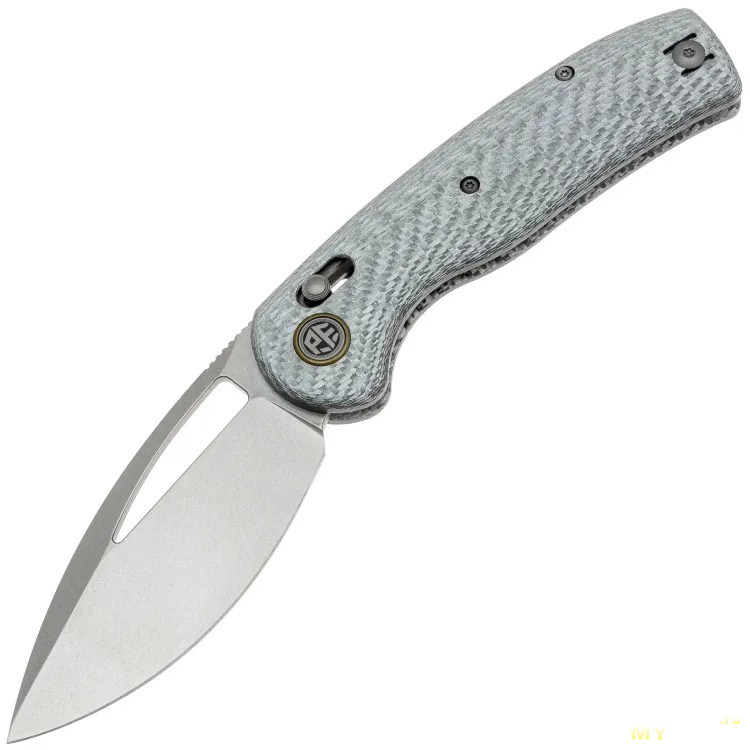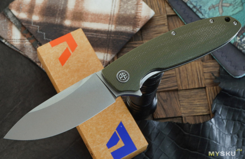 Материал рукоятки на первый взгляд смотрится грубовато, плетение напоминает карбоновое волокно (но тут ткань и эпоксидка). Но она гладкая и не склонна впитывать влагу. Спейсер из такого же материала. Центровка клинка без вопросов.Для эстетов у бренда есть и ультем.