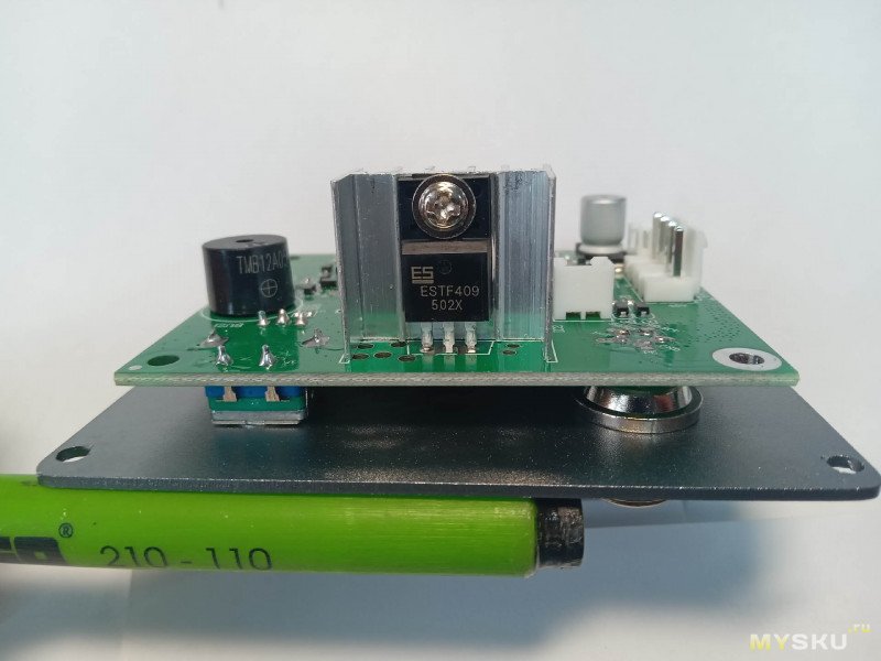 Версия прошивки у меня 2.12, в целом похожа по поведению на KSGER из известного ролика «Обзор паяльника KSGER C470», только там конечно тесты странные были, лично у меня без практического интереса, у меня была своя цель. Тестировавшие подобные станции замечали, что станция имеет достаточно шумный вентилятор, по поводу вентилятора, подтверждаю сам рабочий транзистор холодный как лед (а вот радиатор на диодной сборке Шоттки на выходе около 39-40°, но это вроде тоже не критично), смотрел теплаком, если конечно не кочегарить радиатор как у мужика в ролике про KSGER, может и правда он там не особо нужен в работе, так разве что по мере нагрева, но этого у Kanoyu к сожалению умного управления не реализовали (я кстати тоже не стал заморачиваться, у меня вытяжка ревет все равно громче), причем программно это можно было сделать, тк сам вент отключается в Sleep-режим. Еще что заметил, моя почему-то не показывает реальную температуру в sleep-режиме, только через минутку резко видно как падает и начинает меняться, а так стоит как вкопанная, грубо говоря отображает последнюю запомненную, в связи с этим вопрос: проц там стоит nuvoton, интересно есть ли прошивки и чем ее туда залить, кто практиковал со станциями KSGER на 245-х жалах?