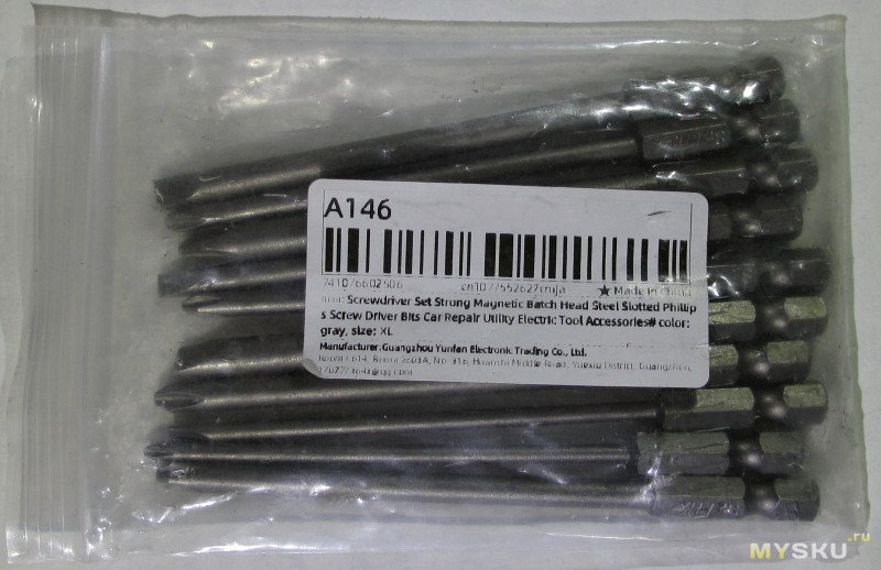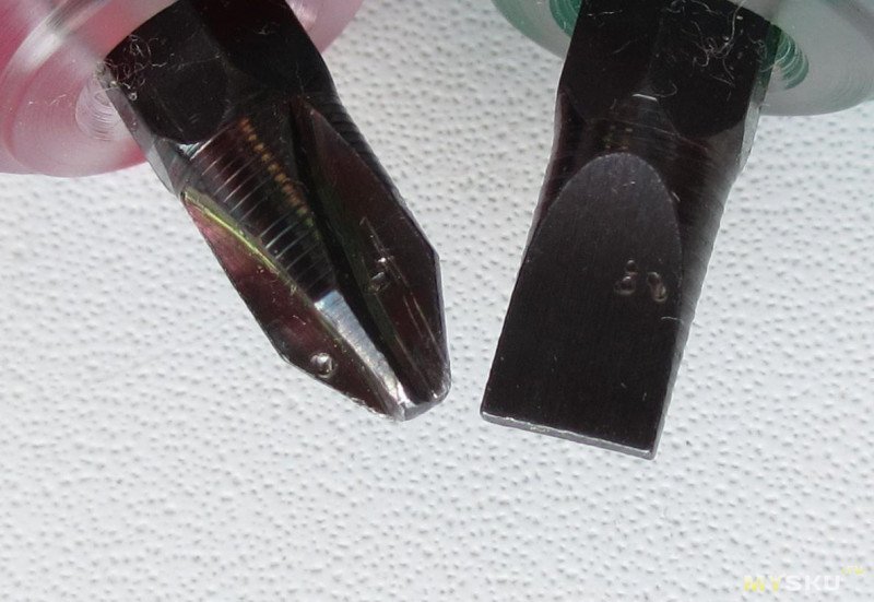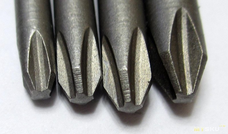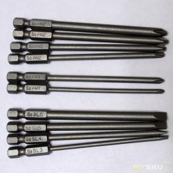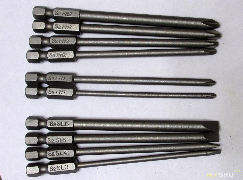 Биты намагничены. В комплекте 10шт, пара ph1, и по 4шт ph2 и шлиц разного диаметра.