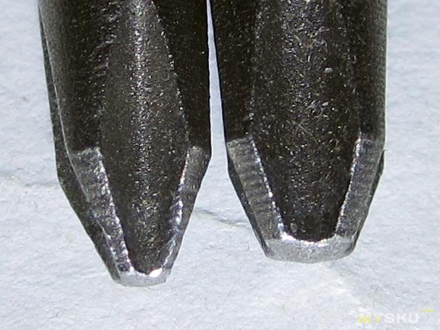 Все биты кривоваты, при зажатии в патрон кончик бьет миллиметра на 2-3. Но у битодержателя люфт все равно больше, врядли это критично.