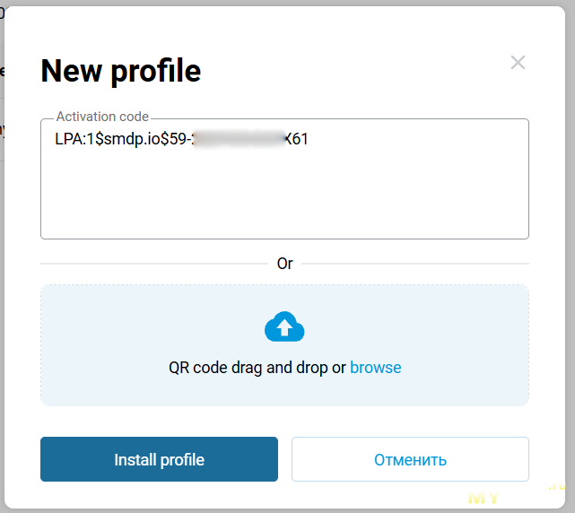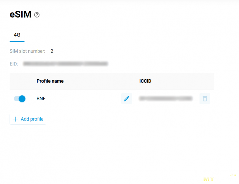Открывая его, мы видим все записанные eSIM-профили, их ICCID, а так же можем их переименовывать, выбирать именно тот, который нужен вам, а так же добавлять новые и удалять.