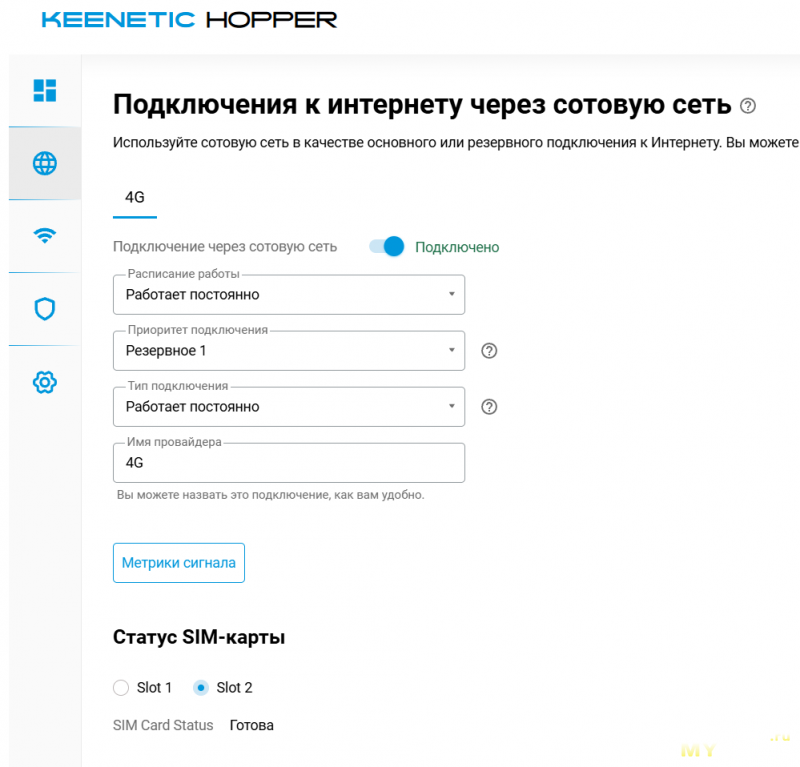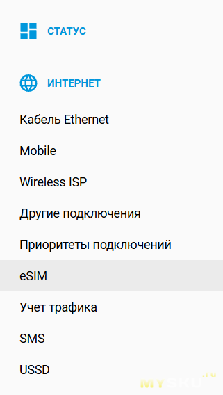 В окне управления модемом появился переключатель сим-карт. В данном случае — Slot 1 — это физическая СИМ-карта, а Slot 2 — eSim.