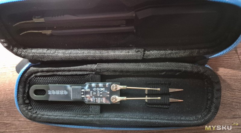 Пластинка нужна для крепления на любую поверхность. Задняя часть корпуса пинцета содержит магнит, опять же для крепления или как органайзер мелких компонентов.