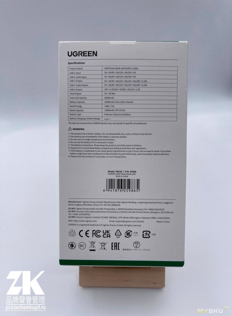 Зачем купил? Честно говоря, вопрос странный, потому что на первый взгляд казалось, что еще один пауэрбанк это просто лишняя штука в сумке. Но пауэрбанков много не бывает, а когда твой основной портативным аккумулятор сел, начинаешь понимать, что иногда такая вот «лишняя штука» может оказаться самой нужной. Поэтому недолго думая, даже не советуясь с жабой, я просто прокликал форму заказа на большом красном базаре Алишера Бурхановича и стал ждать. Ждать, кстати, пришлось всего 4 дня и посылка (видимо, с Российского склада) была в ПВЗ у дома. Фирменный зеленый паке UGREEN, много пупырки и вот, герой сегодняшнего обзора у меня на столе.