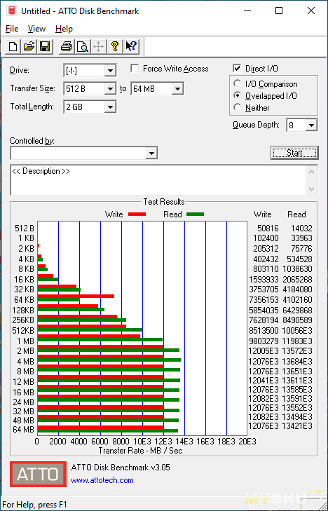 На последовательном обмени без очереди при любом размере блока развить полную скорость он не может: