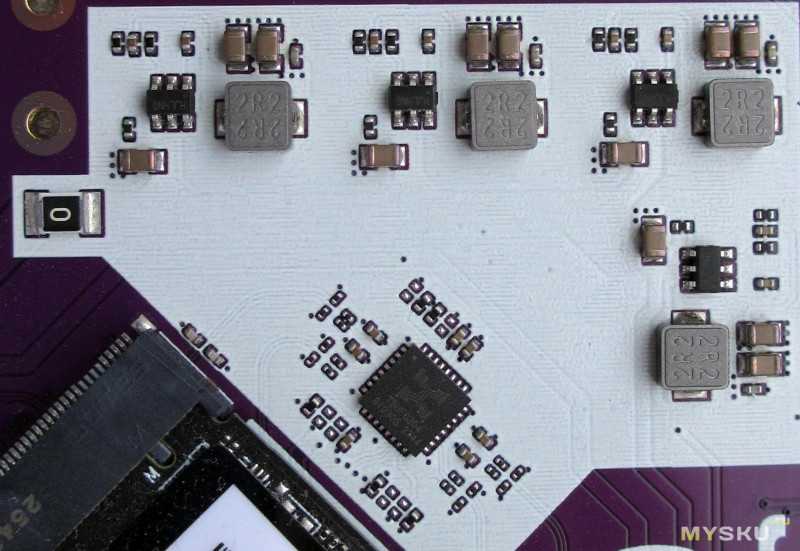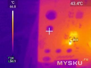 Нагрев шим-контроллера преобразователя питания первого слота во время потреблении ssd около 2А составил 67C (воздух ~25), дроссель холоднее: