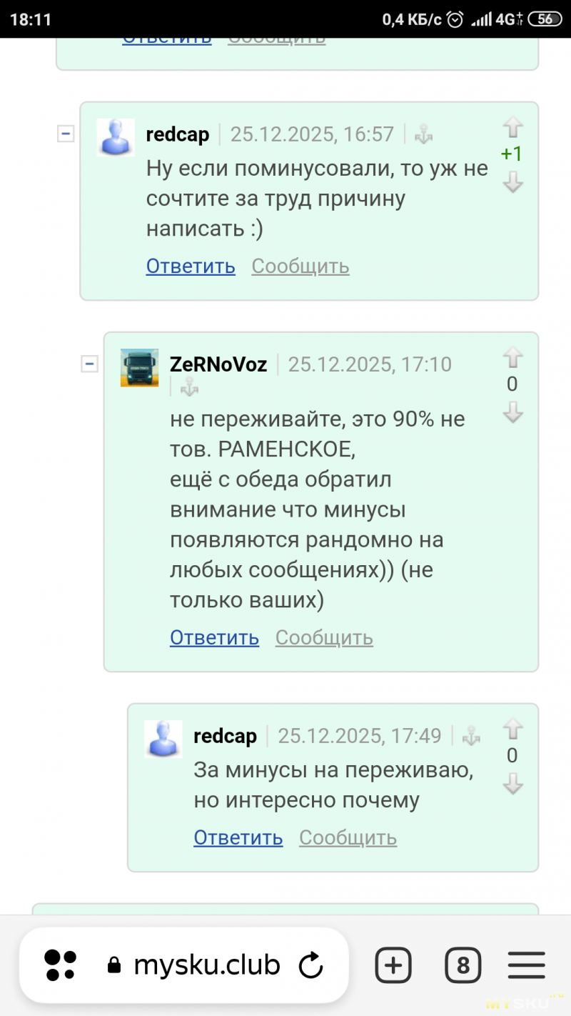 ещё с обеда обратил внимание что минусы появляются рандомно на любых сообщениях)) (не только ваших)
