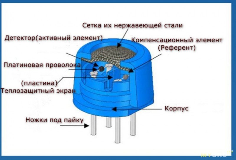Компенсационный элемент (Референт): не имеет катализатора и не реагирует на газ. Он нужен для компенсации изменений температуры и влажности окружающей среды.