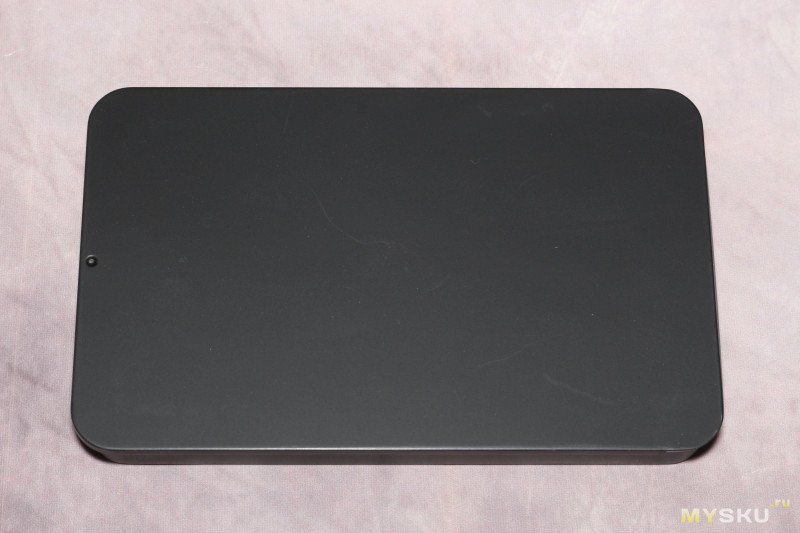 Кейс — стальной параллелепипед со скругленными краями, окрашен в черный цвет. Металл довольно тонкий — прогибается, если не сильно нажать пальцем. В закрытом состоянии крышка фиксируется надежно и не норовит сама открыться.