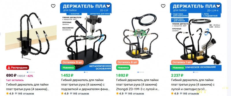 Назвал бы обзор “набор третьих ручек”, если бы за “ручкой” не закрепилось стойкое обозначение письменного прибора. 12 небольших “крокодилов” на гибкой ножке, с магнитным основанием, в кейсе-базе. Удобны для мелкого DIY — покраски фигурок, пайки и т.д.