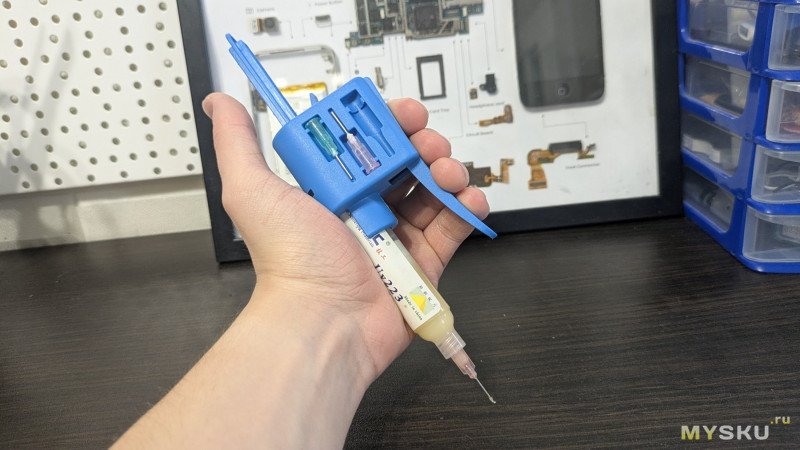 Если вы хоть раз пытались аккуратно дозировать флюс из стандартного 10-кубового шприца, нажимая на поршень большим пальцем, то знаете эту боль. Сначала он не идет, вы давите сильнее, и — БАХ! — на плате жирная лужа, а дорогой Amtech расходуется впустую.