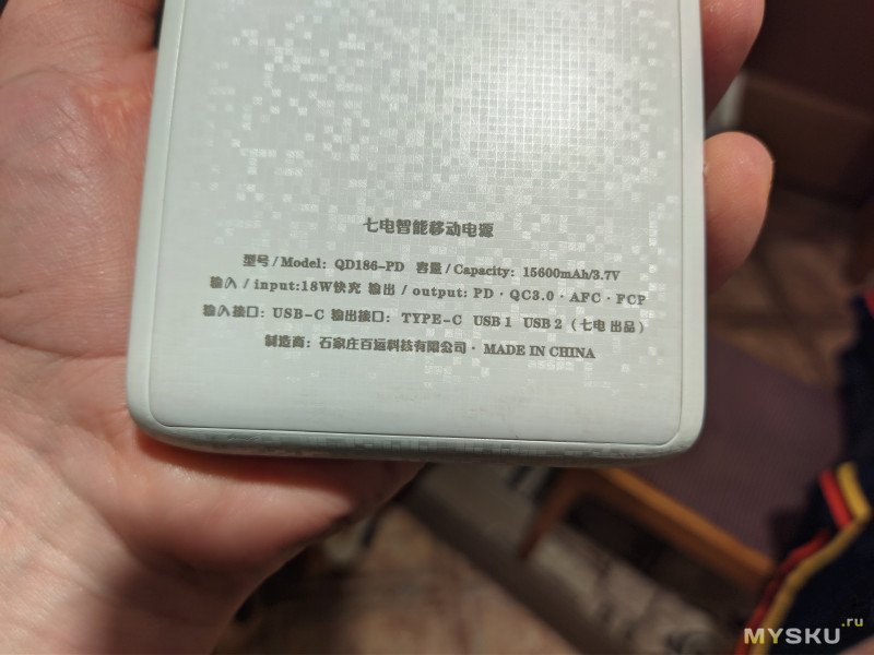 Емкость: 10000 мАч / 37 Wh.