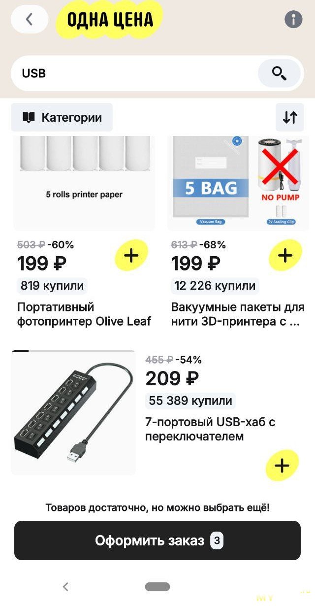 Хаб был найден в разделе «Одна цена». Там полно мусора, но если сортировать по цена/категория, то можно увидеть что-то интересное. Недавно и поиск подвезли худо-бедно.