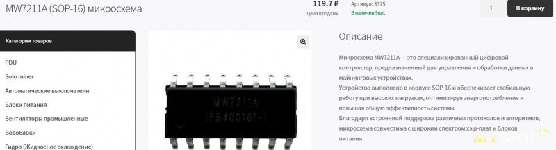 Видим MW7211A. Поиск выдает что-то вроде… микросхема связи в майнинговых установках? Теперь, кажется, понятно, откуда китайцы их снимают в своих подземельях.