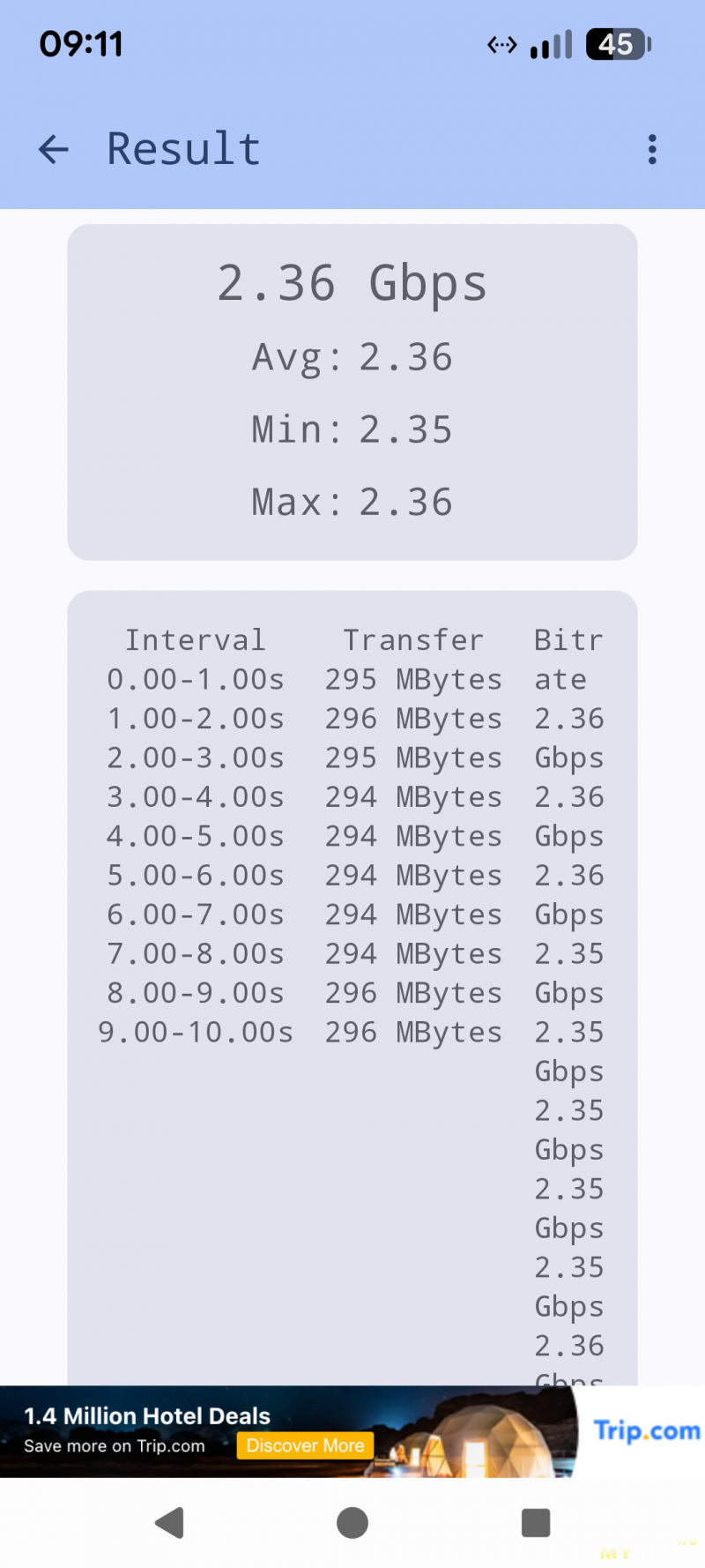 Потестировал скорость с помощью iperf3 из google play до моего NAS: