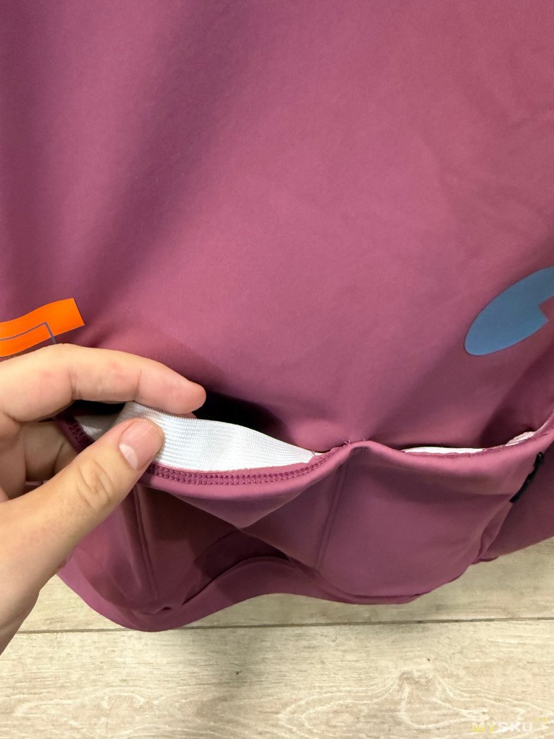 В заднем кармане сумочка с ремкомплектом, поэтому куртку слегка перекосило.