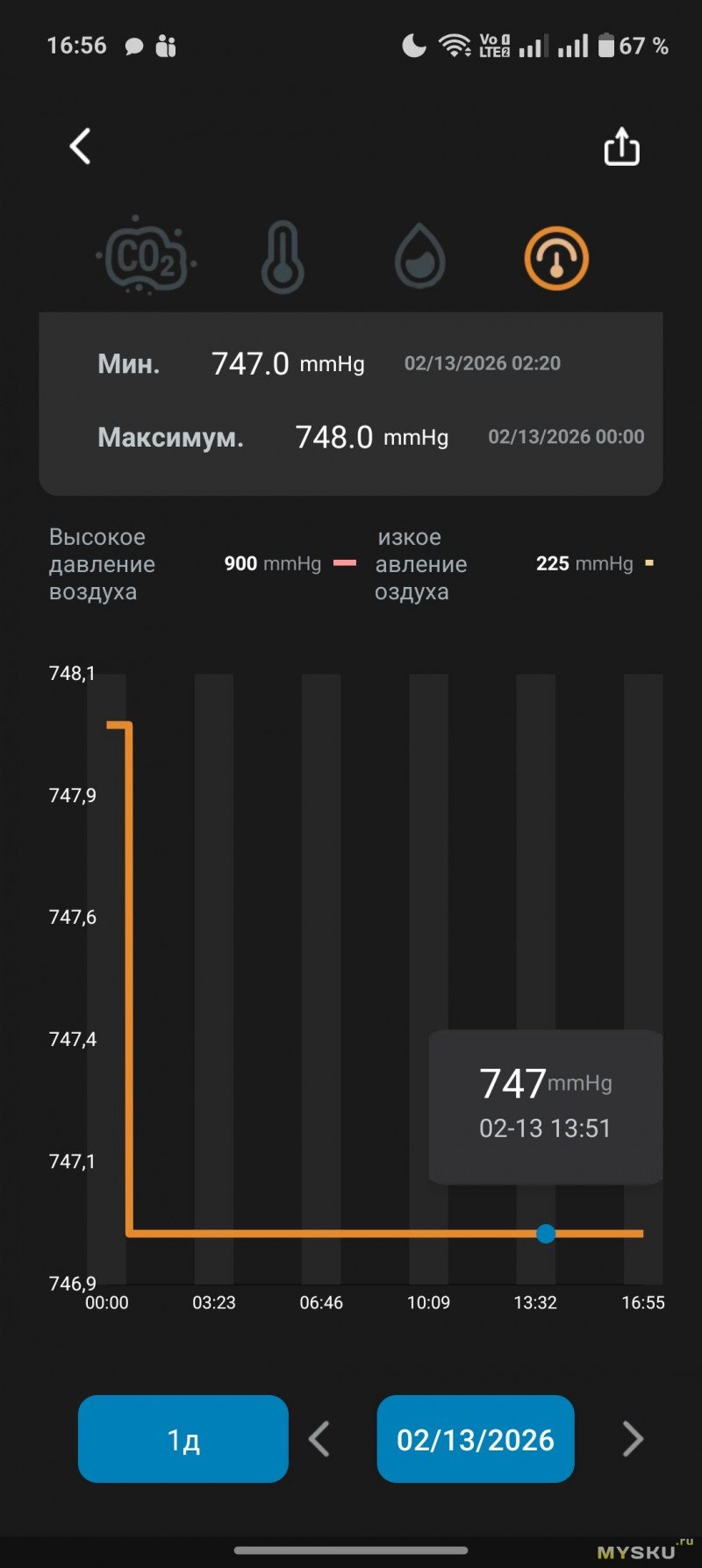 Нам доступна статистика: CO2, температура, влажность и атмосферное давление.