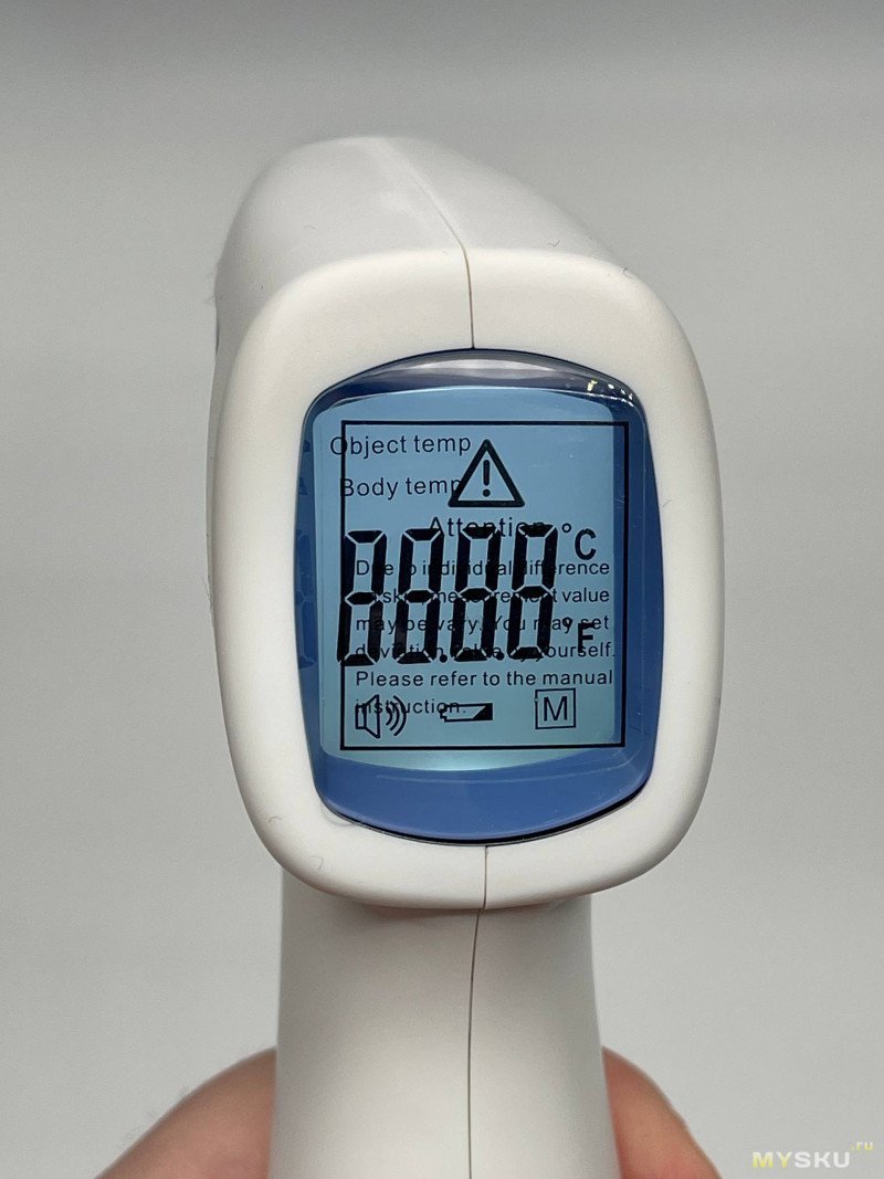 Для измерения необходимо протереть лоб и не поднося термометр вплотную произвести измерение, которое запишется в память. Спустя десять секунд бездействия устройство напишет на экране OFF и выключится.