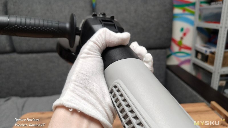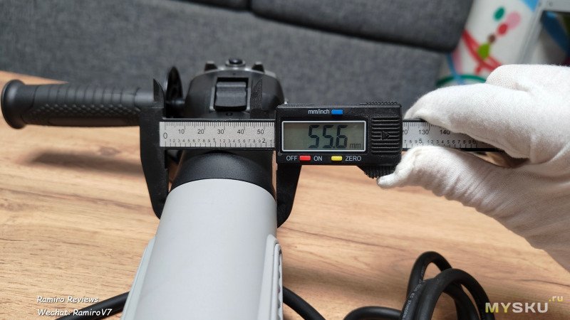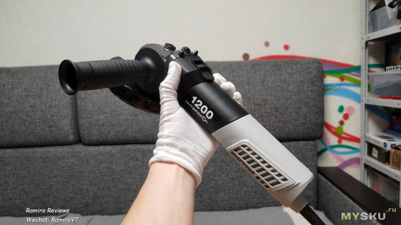 Болгарка весьма компактная и мощная, диаметр хвата 55 мм.