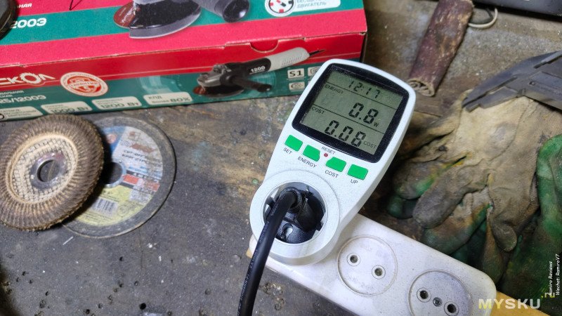 Болгарка уже на 3 уровне без пробоем резала угольник, потребляя около 350 ватт.