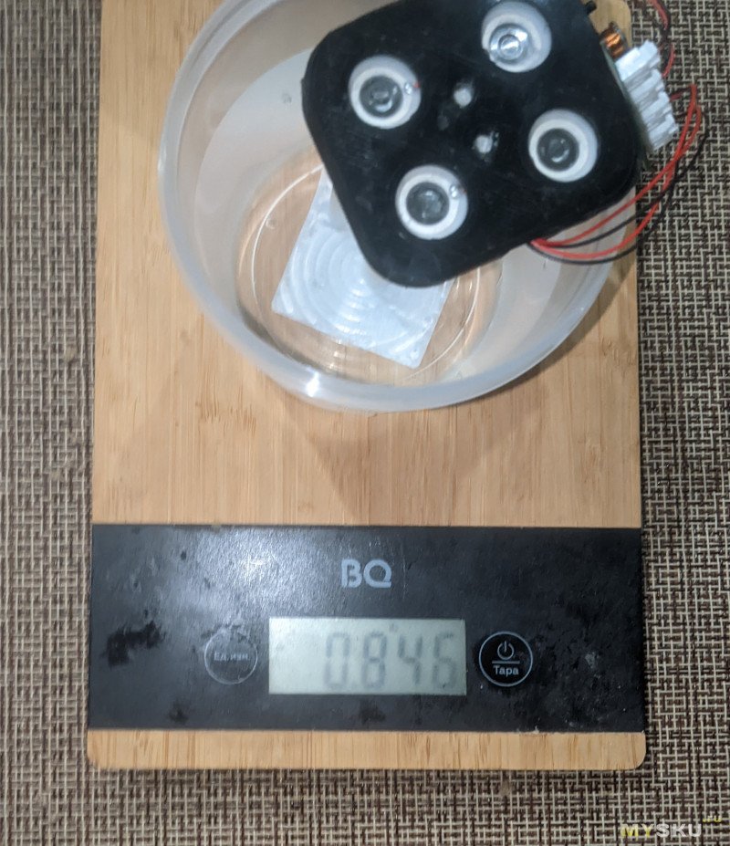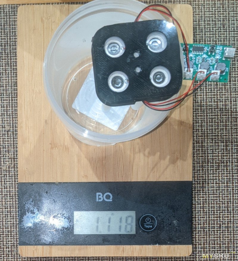 Проверим, сколько оно потребляет воды. Я засек 20 минут и замерил на весах экспериментальную установку до и после теста.