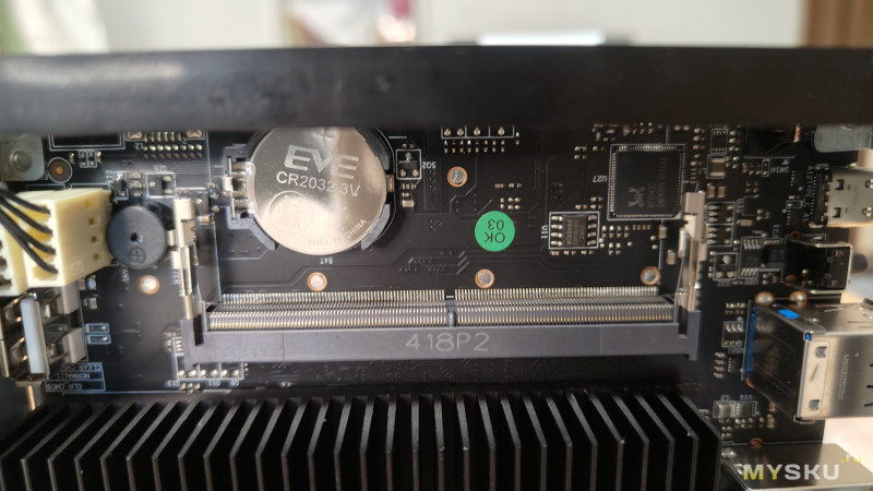 Слотов под оперативку два, что приятно, и там же, рядом, притаилась батарейка для BIOS.