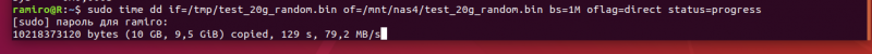 На TerraMaster F2-423 на HDD писалась средняя скорость 80 МБ/с.