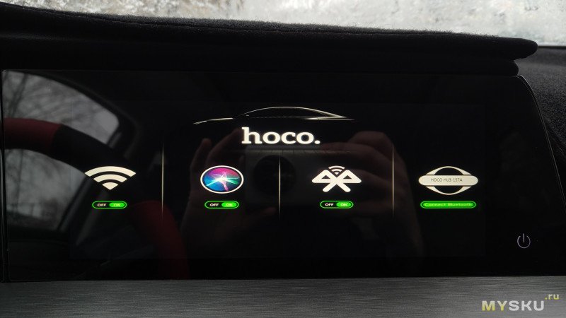 1) Телефон видит Bluetooth адаптера Hoco HU3, понимает, что хозяин в салоне авто, и начинает подключение по Wi-Fi к ГУ автоматически. Не надо даже доставать телефон из кармана.